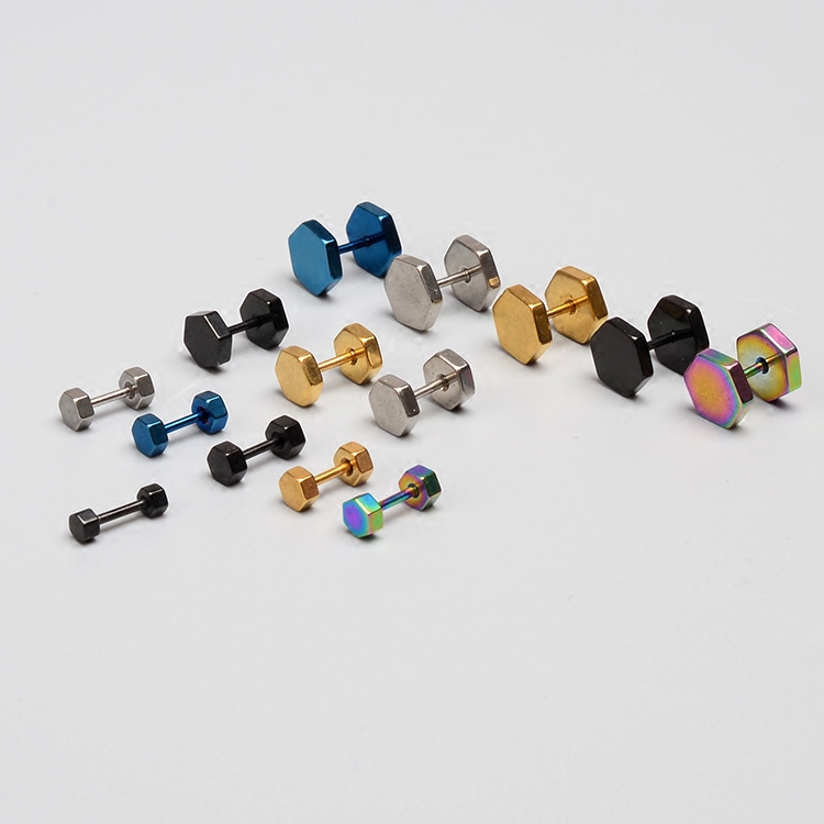 钛钢六边形耳钉几何形双头耳骨钉街舞朋克嘻哈街头潮男耳钉单只潮