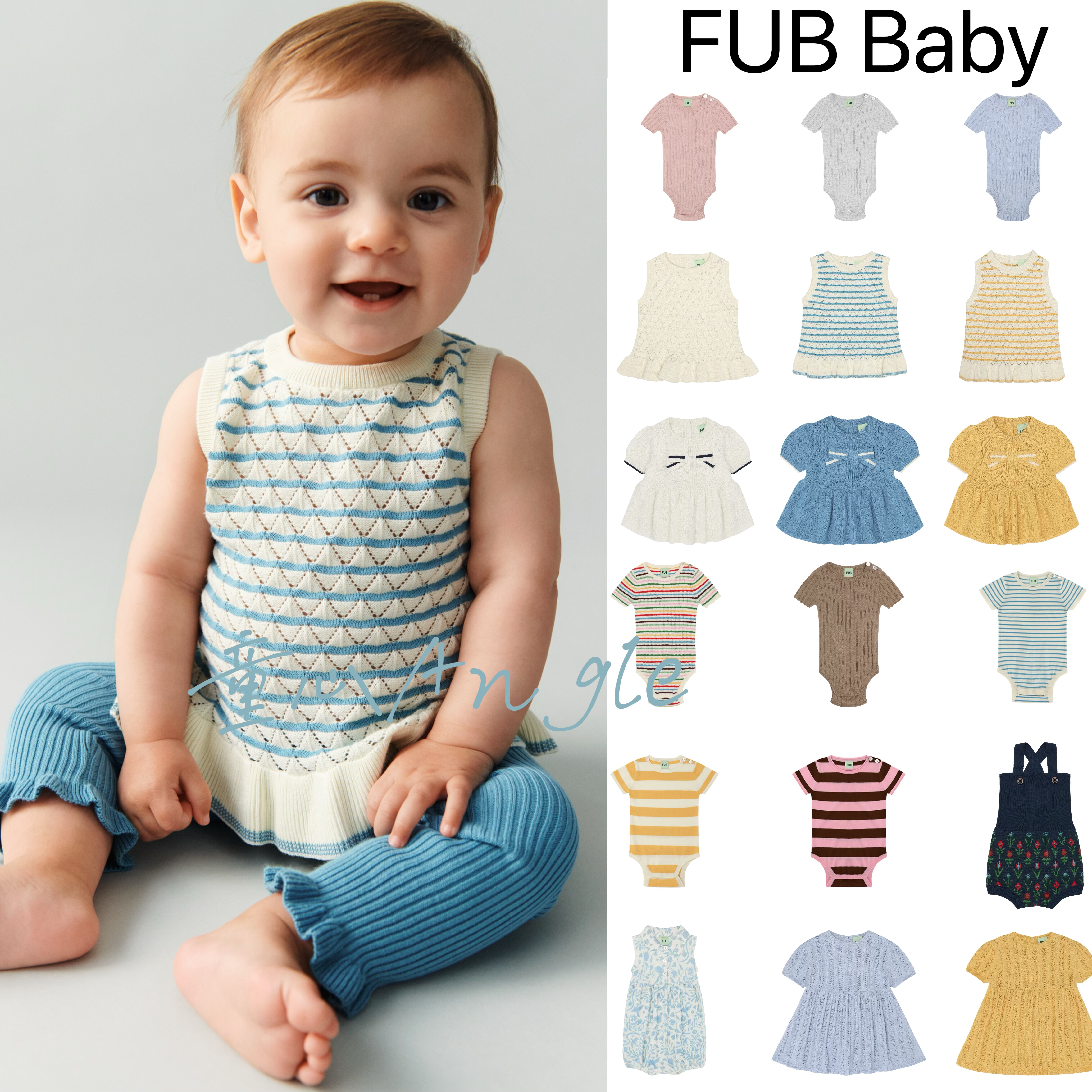 丹麦FUB26SS春夏儿童可爱针织连体衣爬服背带裤连衣裙短袖针织衫