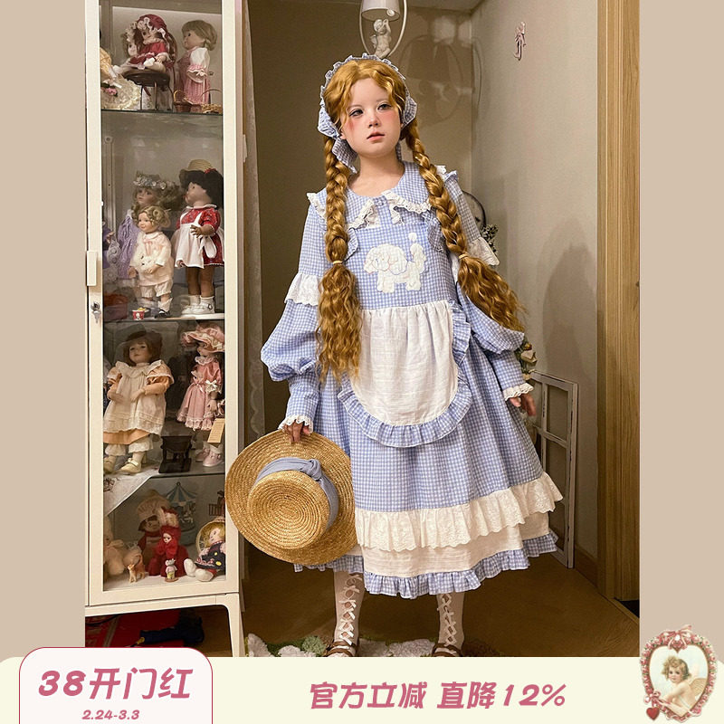 日系和风Lolita裙洛丽塔可爱拼接木耳边女仆连衣裙背带围裙两件套