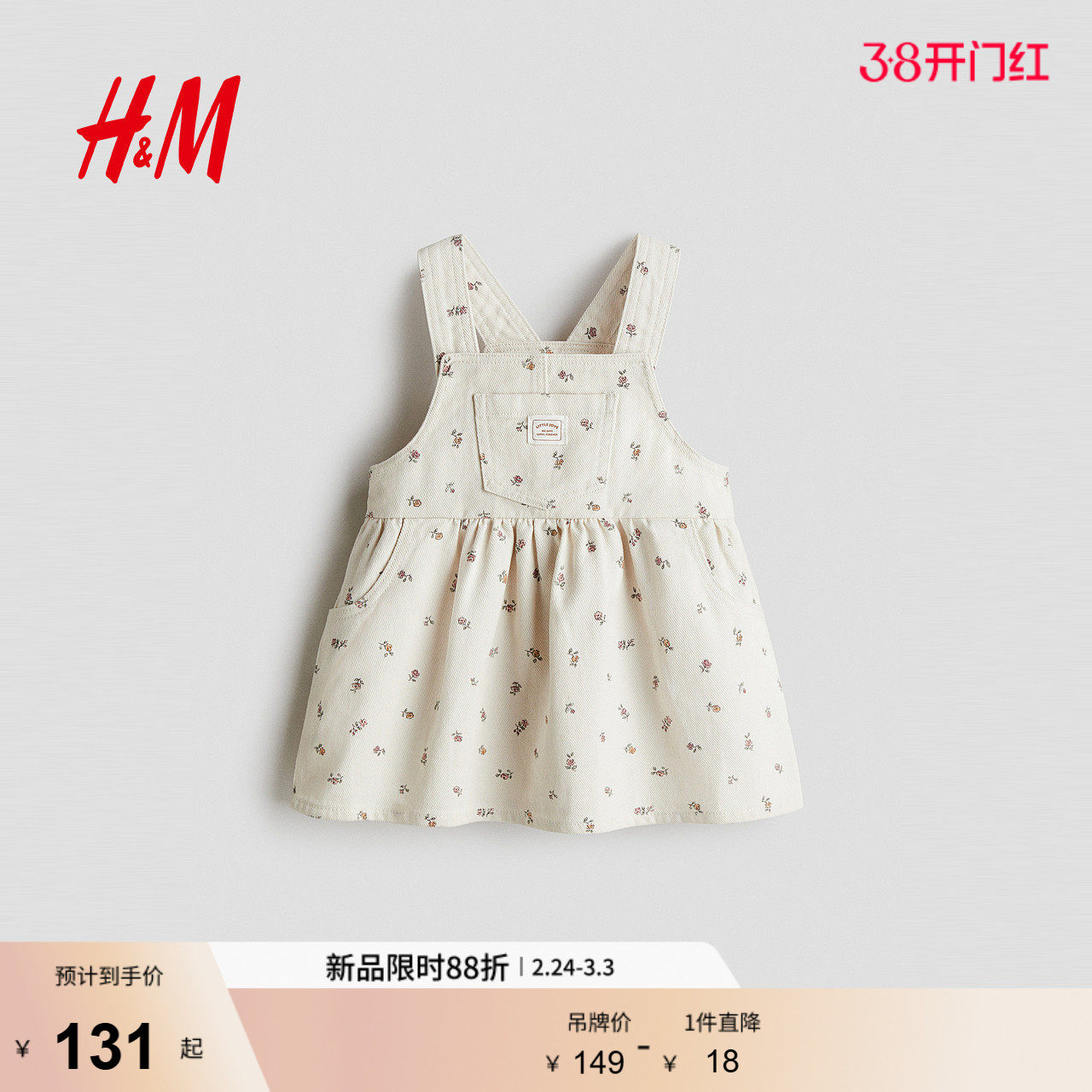【商场同款】papa爬爬春季儿童背带裙女童印花牛仔连衣裙温柔可爱
