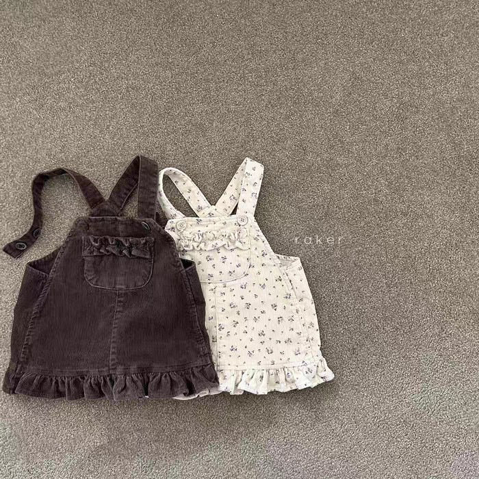0-5岁花边连体灯芯绒背带裙背心连衣裙女童百搭可爱四季连衣短裙