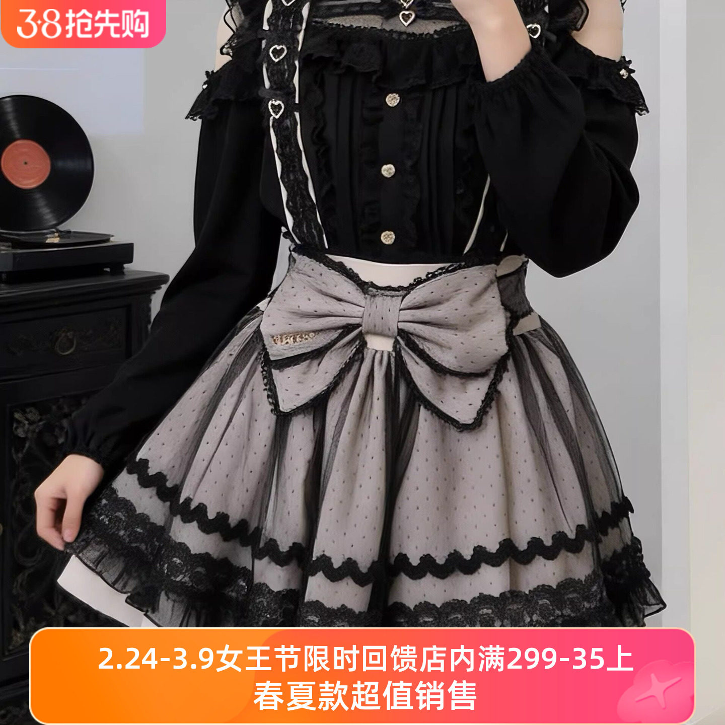 甜美复古可爱重工洛丽塔Lolita裙斗篷外套背带蓬蓬连衣裙两件套裙