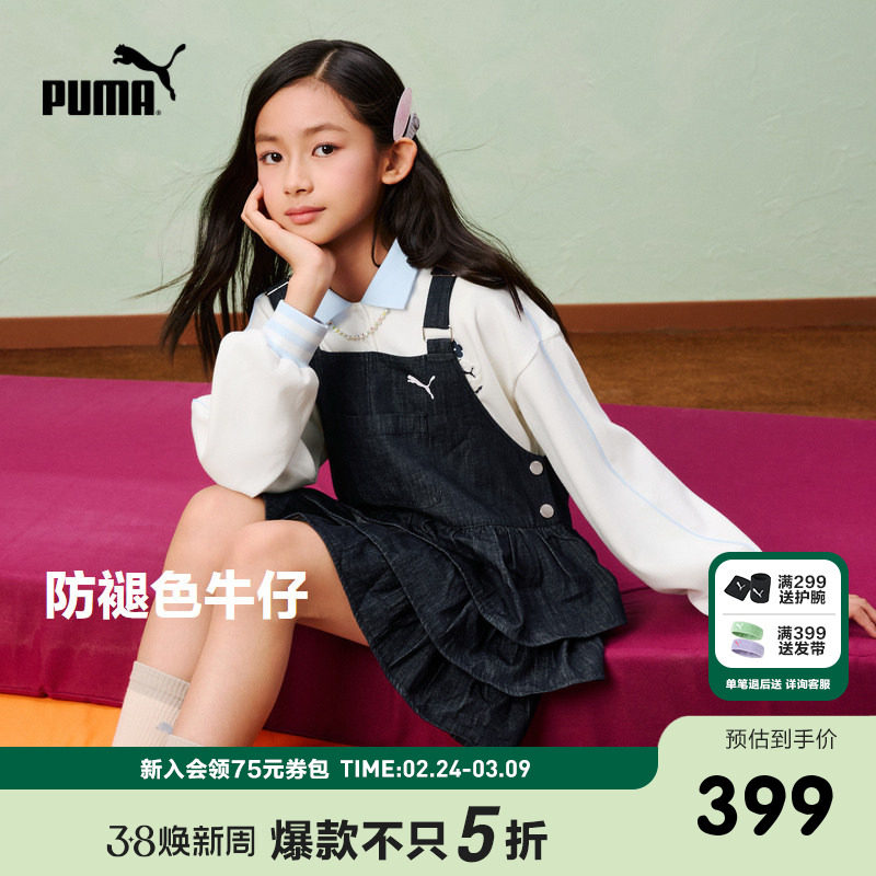 PUMA彪马童装26春季新款儿童女童连衣裙背带裙俏皮可爱牛仔裙子
