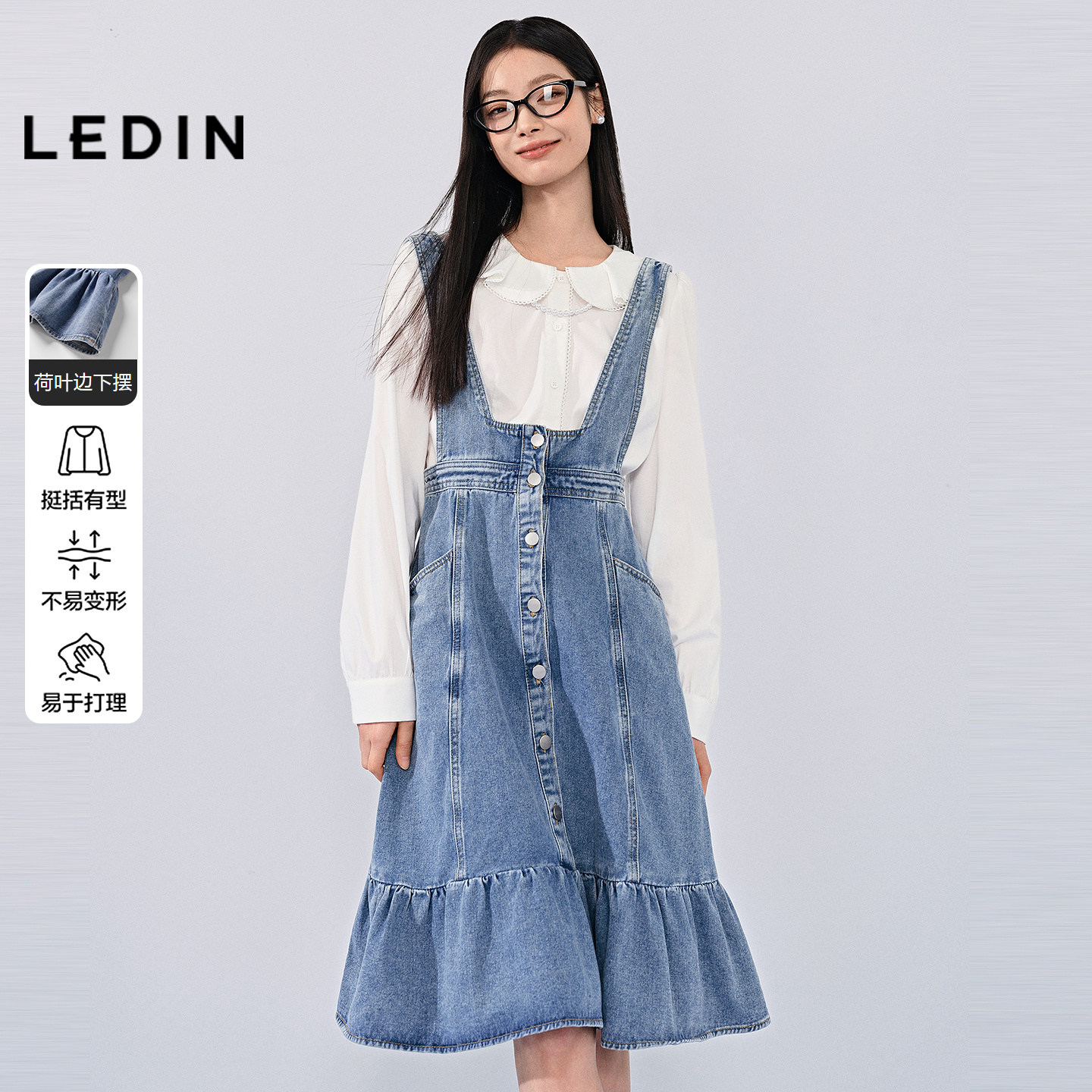 乐町全棉背带合体连衣裙女装26春季甜美可爱荷叶裙摆好搭牛仔裙子
