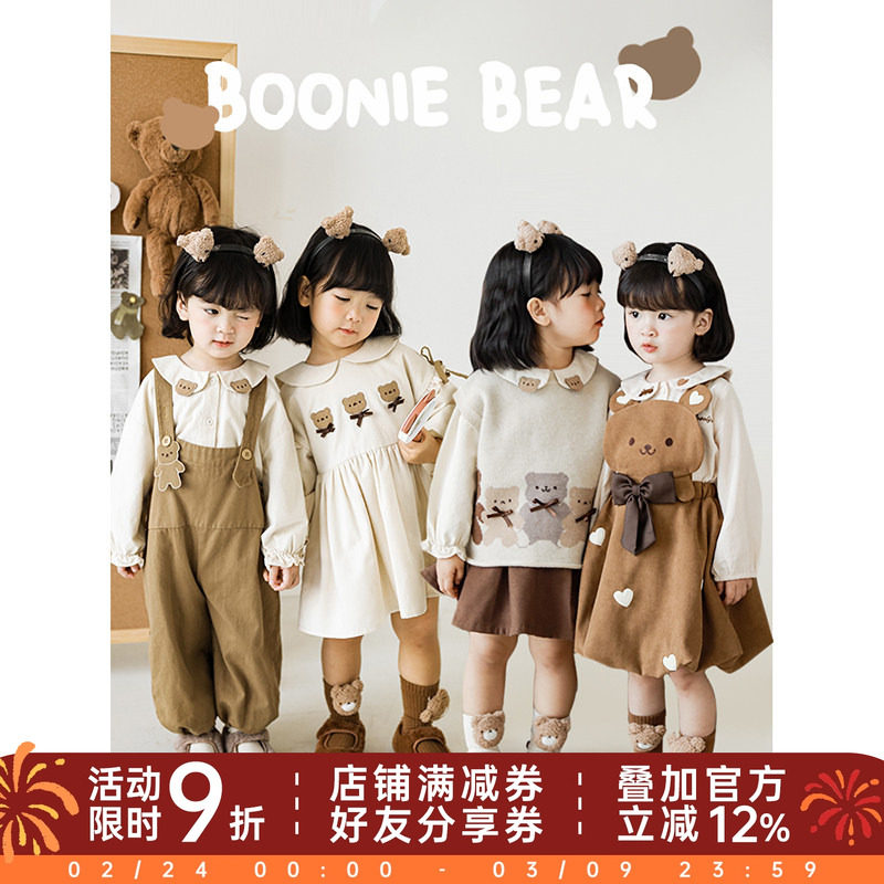 幼悠女童可可熊秋冬连衣裙可爱卡通绣标木耳花边女宝宝时尚背带裤