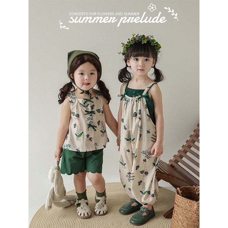 幼悠女童夏季连衣裙时尚田园风系列印花背带裤宝宝可爱花边短裤潮