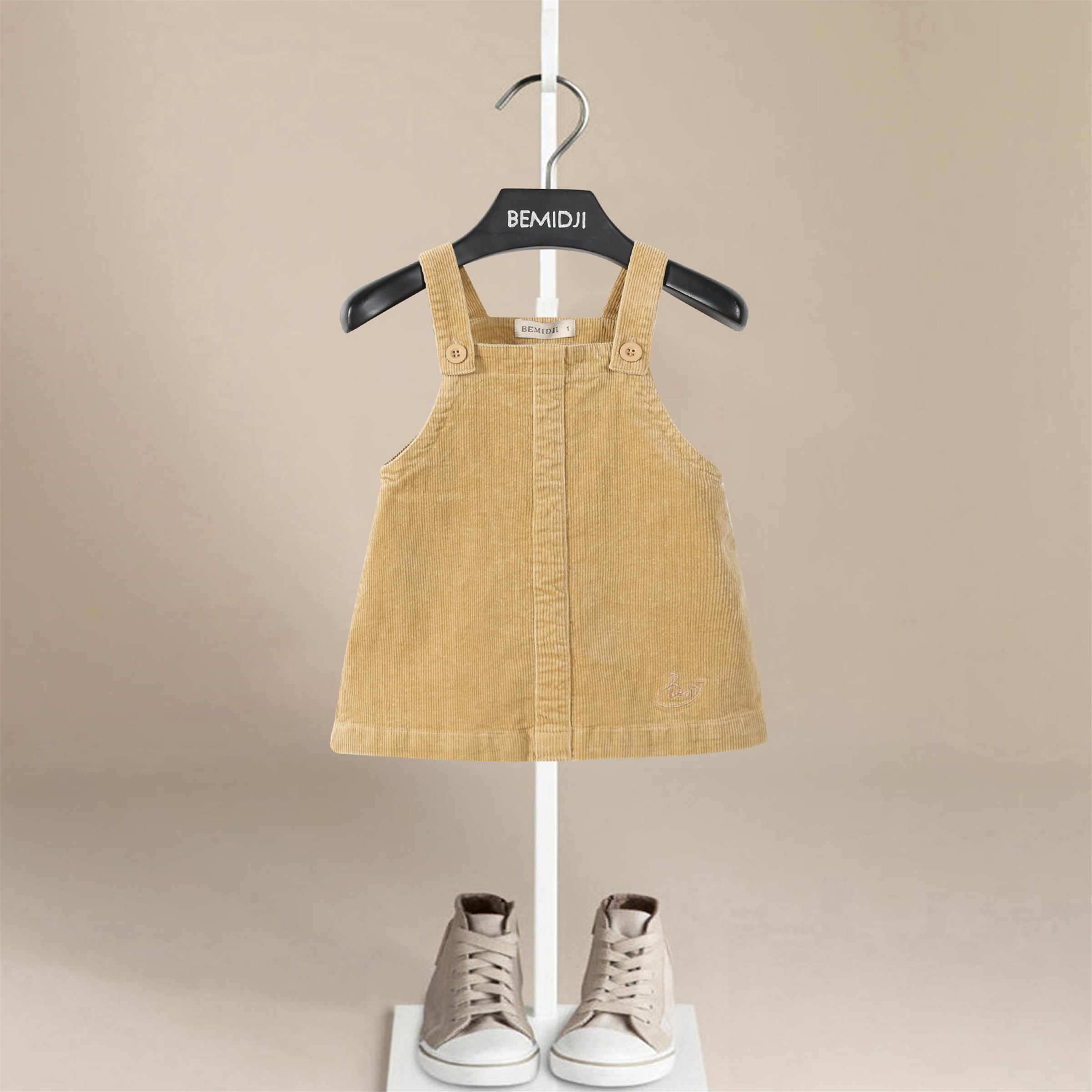 伯米吉春装女童背带裙灯芯绒粉色吊带裙洋气可爱女宝宝连衣裙童装