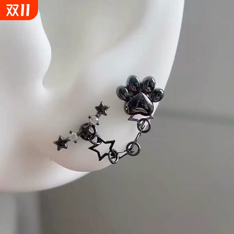 双耳洞耳钉猫爪五角星独特小众设计感耳环夏天轻奢高级感气质耳饰