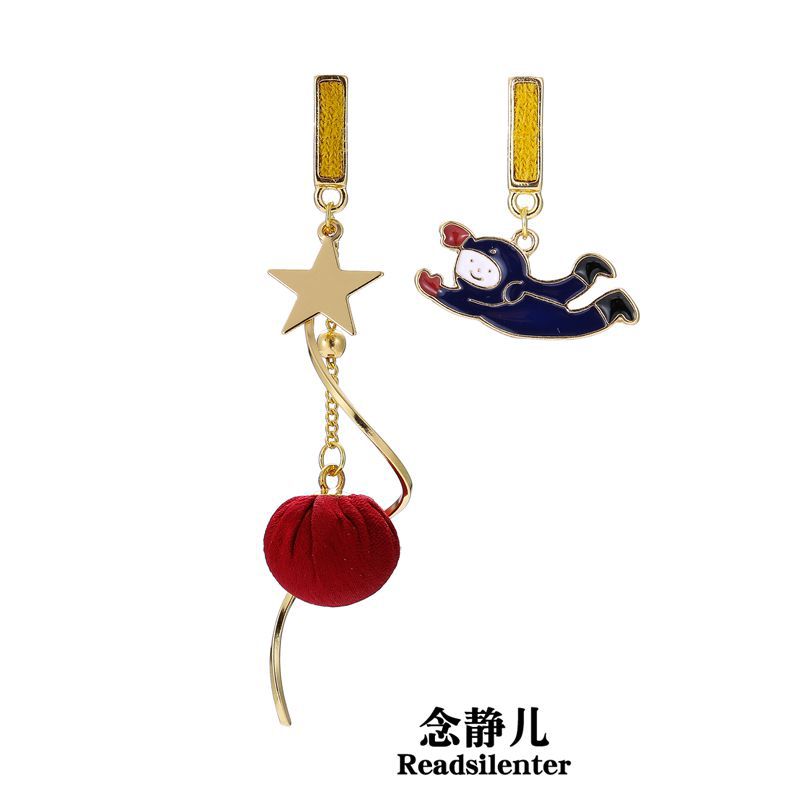 s925银针韩版宇航员新款太空人长款耳环五角星绒毛球耳饰网红同款