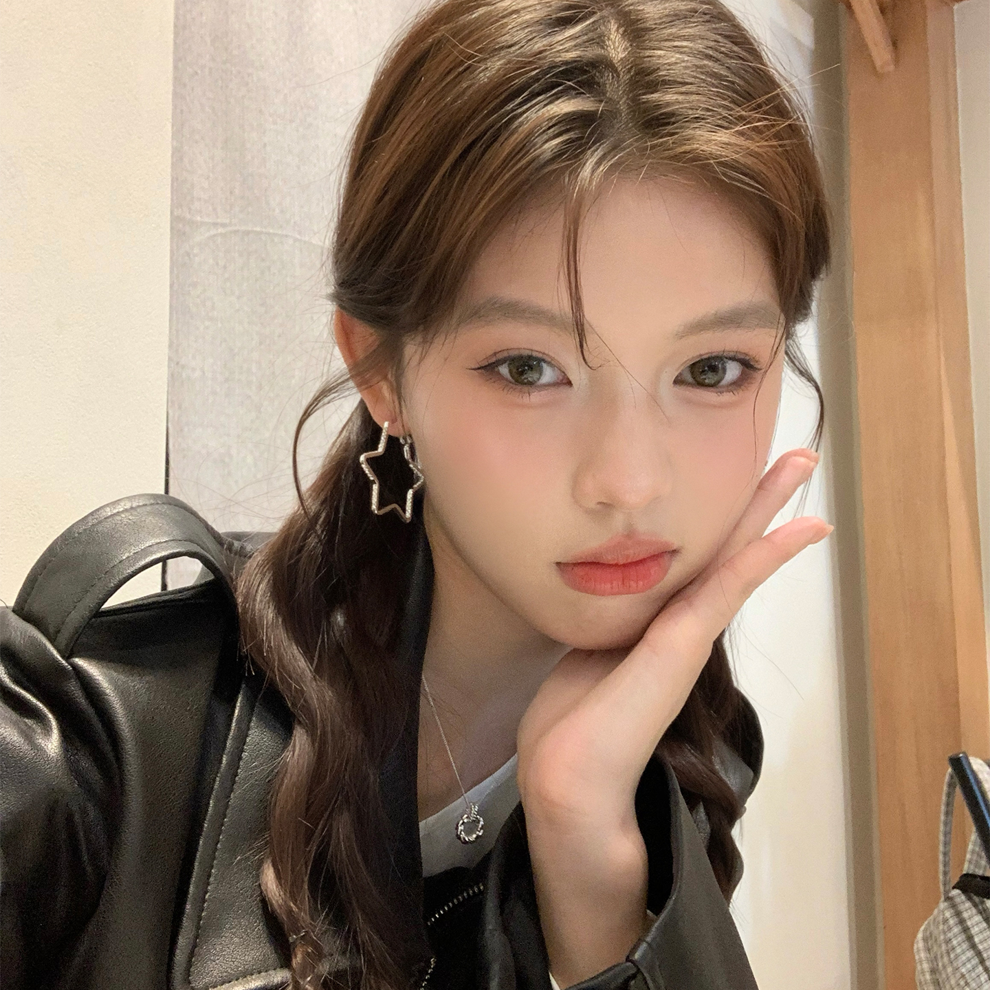 韩系闪锆镂空五角星星圈圈耳环女轻奢高级感气质耳圈独特漂亮耳饰