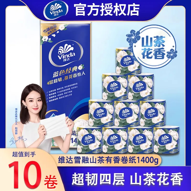 维达卫生纸卷纸蓝色经典140g10卷山茶花香味厕纸巾家用实惠装整箱