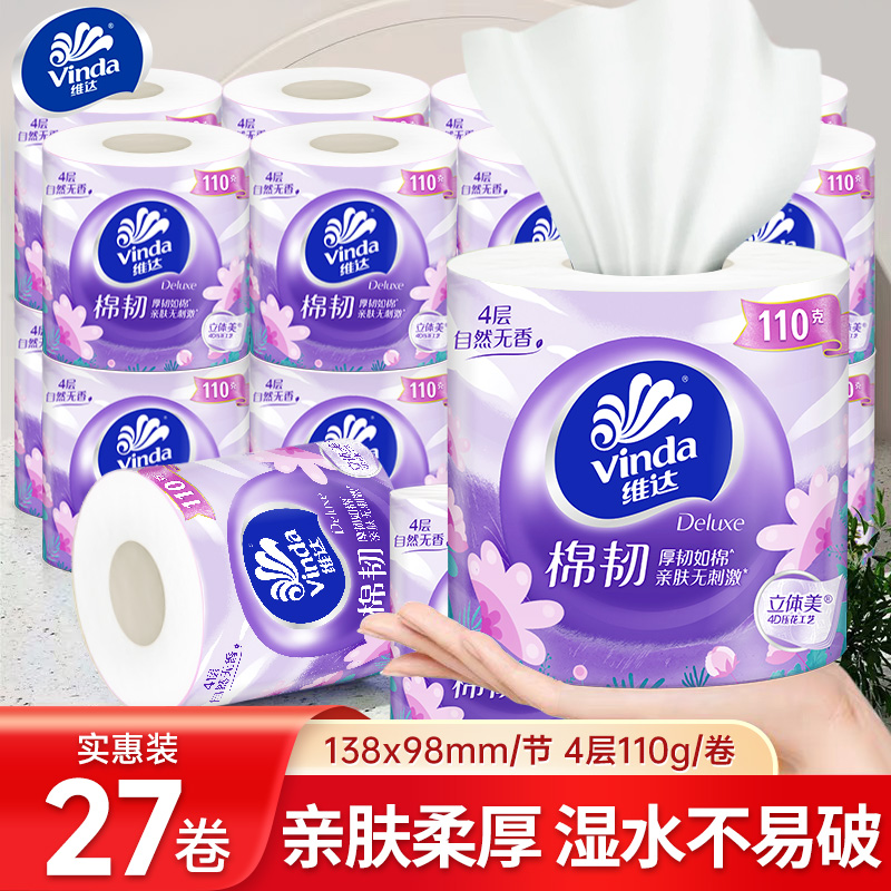 维达卫生纸有芯卷筒纸实惠装家庭用4层110g厕纸手纸纸巾厕所专用