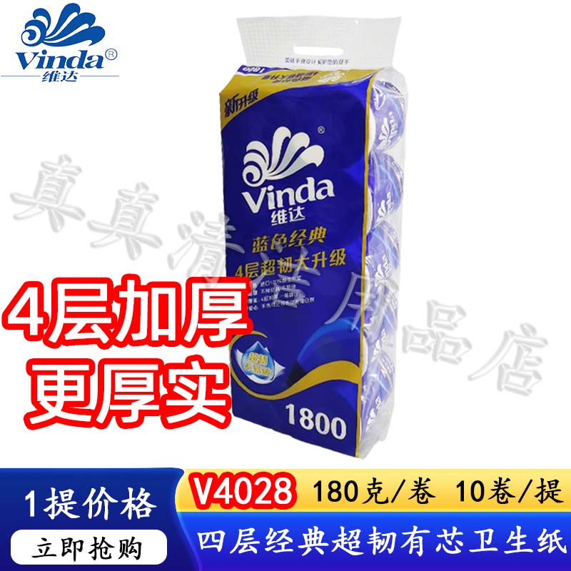 维达卫生纸4层卷筒家用小卷纸180g蓝色1提V4028蓝色经典10卷包邮