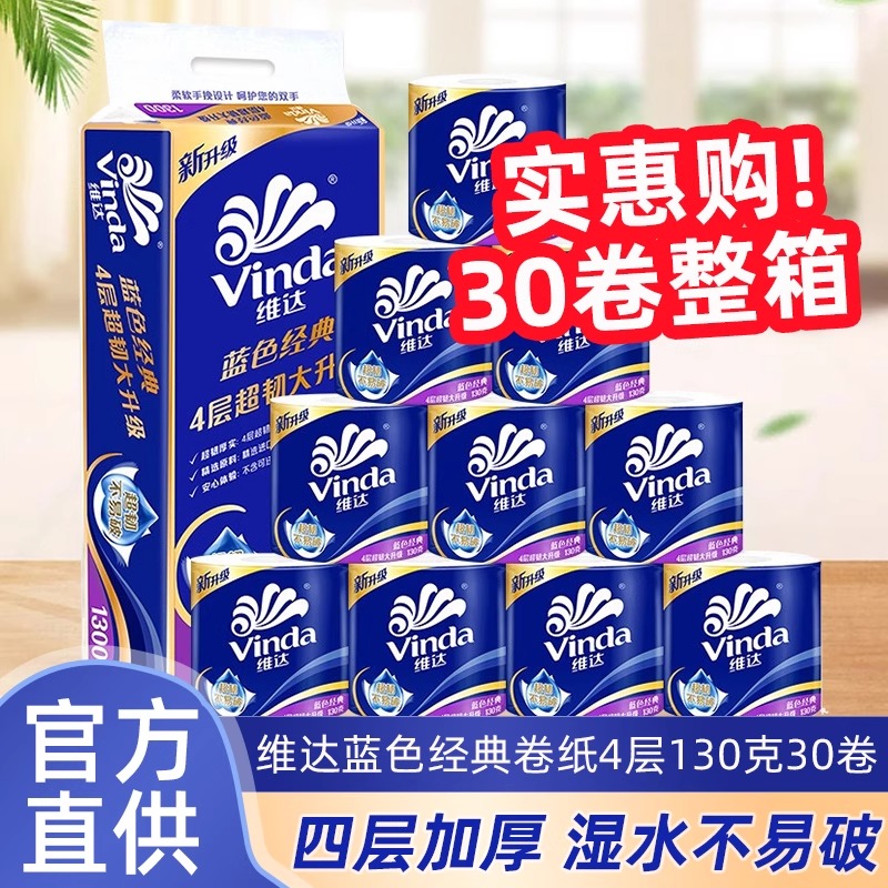 维达卫生纸卷纸特价实惠装蓝色经典家用厕纸学生宿舍有芯手纸家用