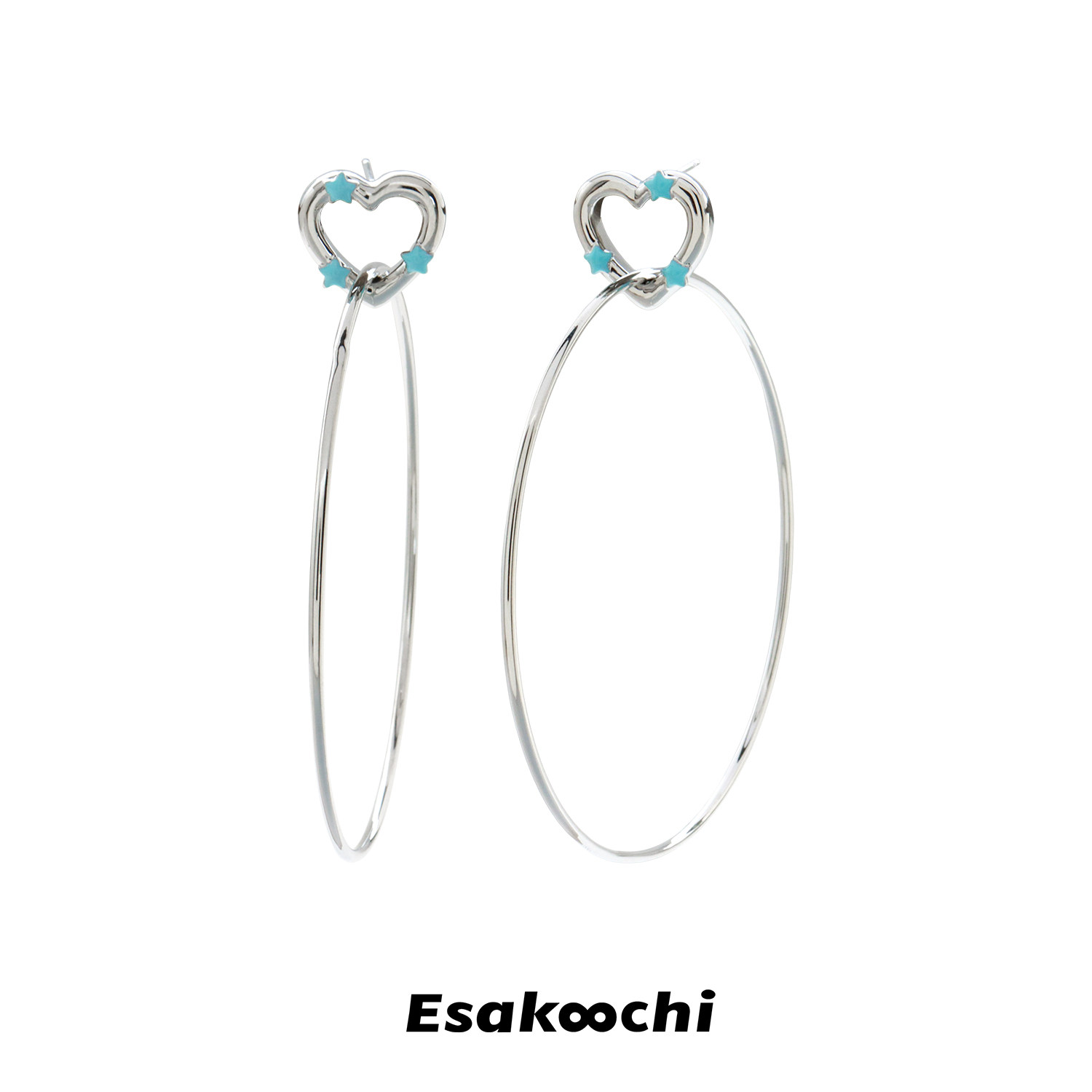 Esakoochi原创原宿风蓝色星星爱心大圈圈耳环夸张设计感耳饰