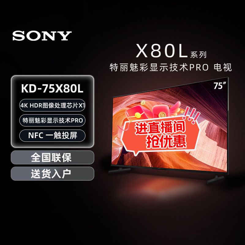 【自营】Sony/索尼 KD-75X80L 75英寸 高色域智能电视 4K HDR5573