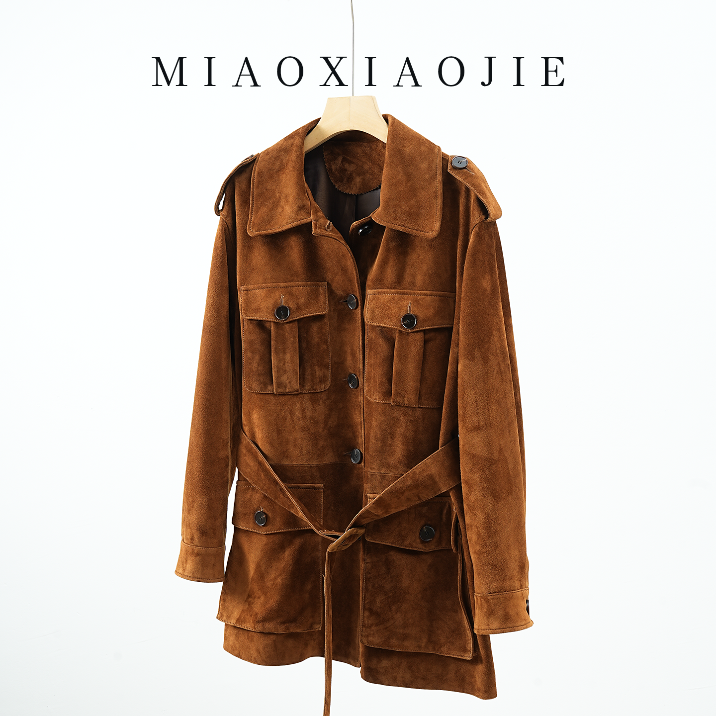 MULVAN 美学编导 立领麂皮绒夹棉外套女高级感宽松系带中长款风衣