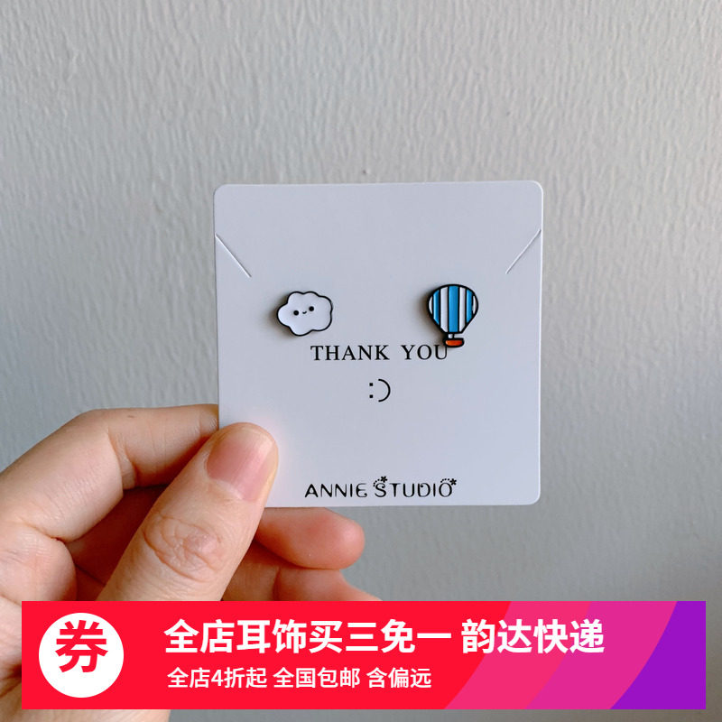 安妮 夏独特热气球云朵不对称耳环韩国ins网红无耳洞夹纯银耳钉女