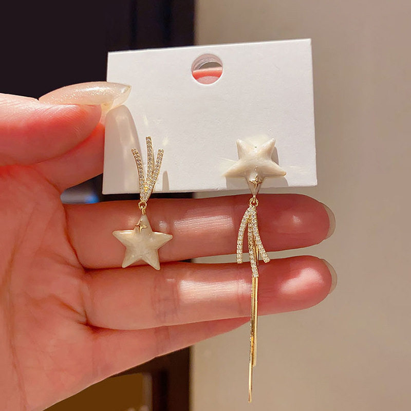 韩国东大门镶钻芒星长流苏不对称耳环高级感显脸瘦耳饰银针耳钉女