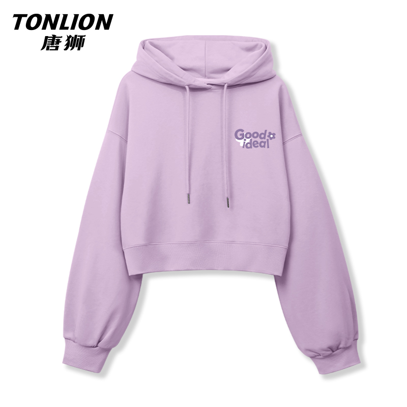 唐狮紫色卫衣女款2025新款爆款小个子宽松显瘦短款连帽上衣外套VB