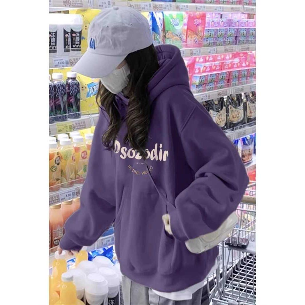 2025新款紫色卫衣女加绒秋冬加厚纯棉大码韩版宽松连帽春秋外套潮