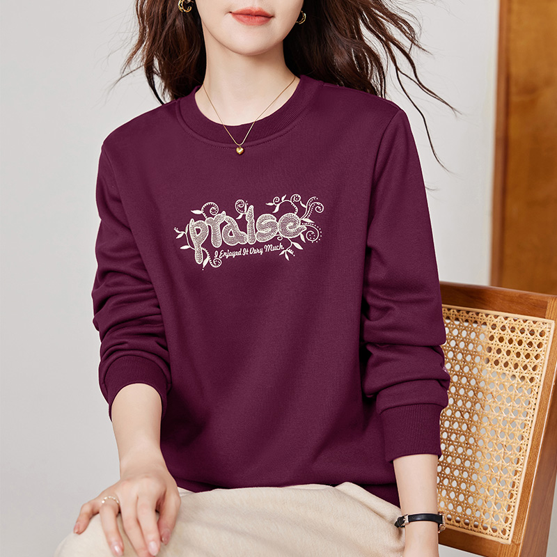 KWV真维斯紫色卫衣女2025新款爆款春秋款薄款圆领长袖上衣外套女