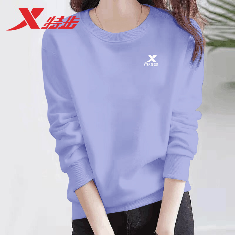 特步紫色卫衣女装冬季长袖休闲服上衣宽松显瘦大码圆领保暖针织衫