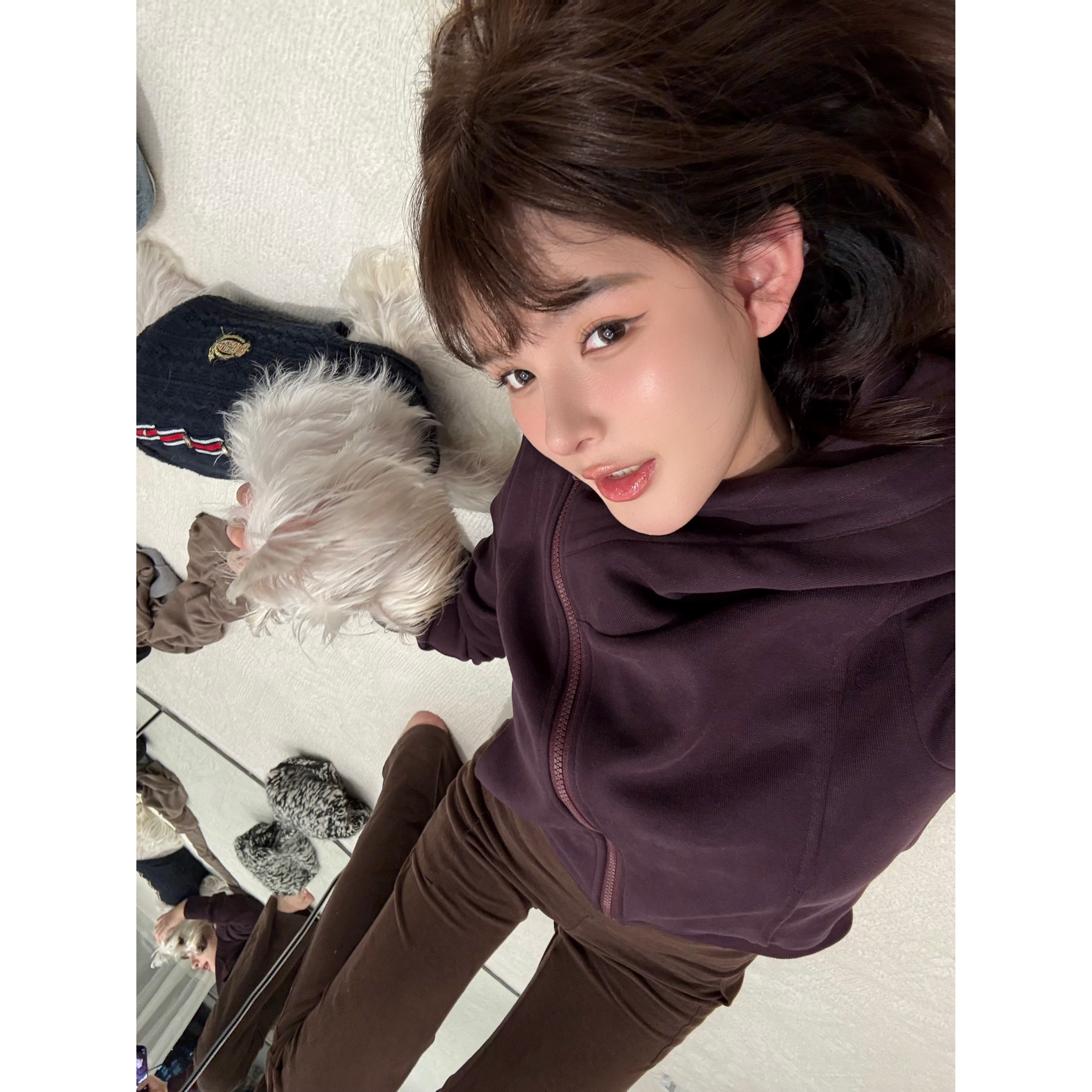 Acaine紫色长袖连帽拉链卫衣外套女秋季韩系小个子宽松显瘦上衣