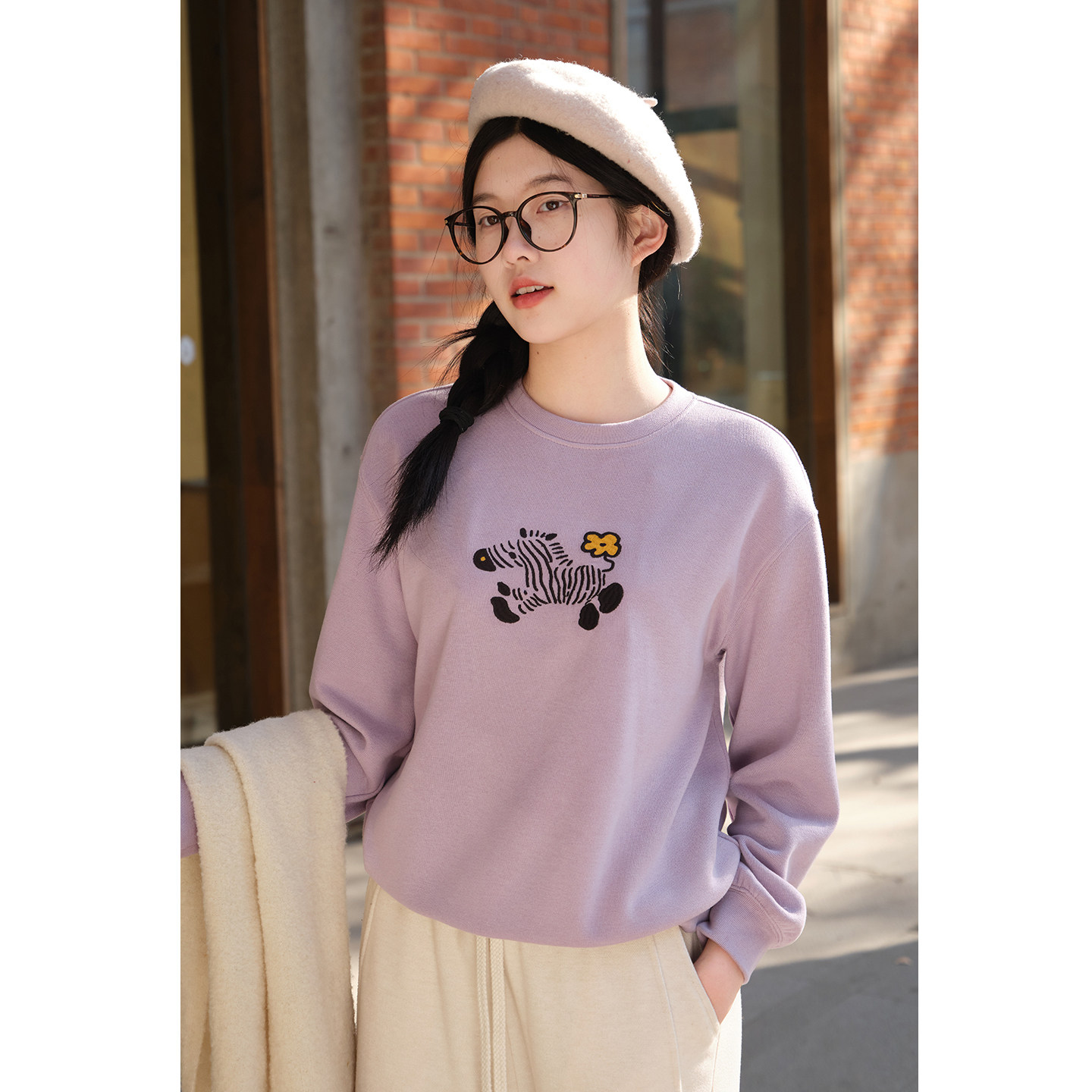 - 字母刺绣套头卫衣女