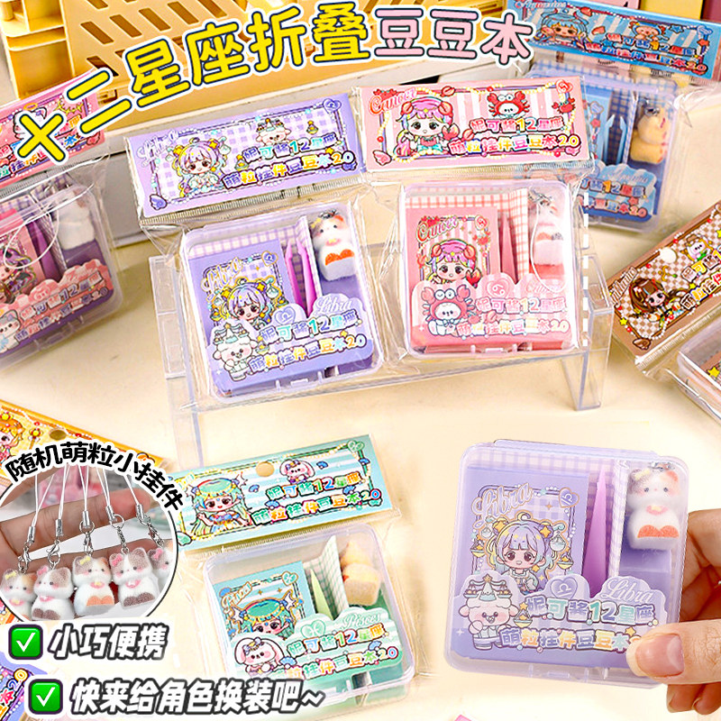 妮可酱12星座萌粒豆豆本套装女孩儿童口袋贴纸本创意衣橱换装安静书装饰小图案可爱变装贴画本免裁剪手帐素材
