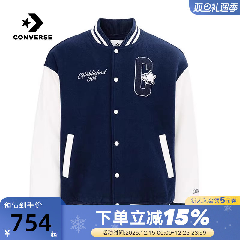 CONVERSE匡威男款复古字母学院风夹克棒球服外套10027340-A01-A02