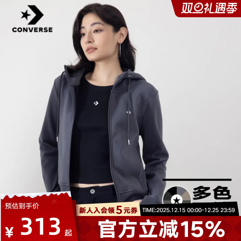 Converse匡威秋冬女短款卫衣外套双向拉链针织连帽开衫WCJ132-GDA
