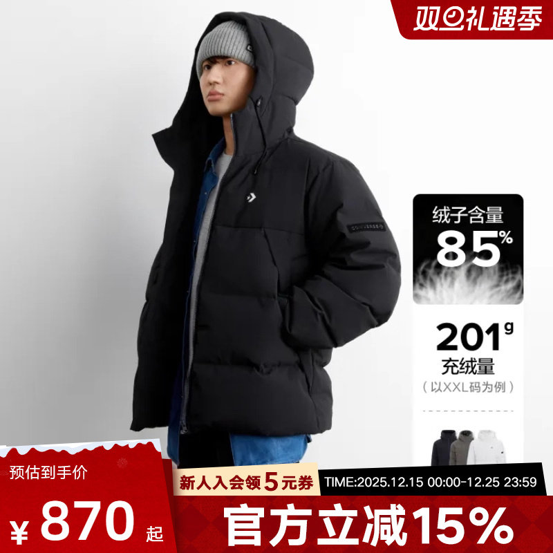 Converse匡威25秋冬新品男连帽保暖羽绒服斜插口袋外套MCJ116-023