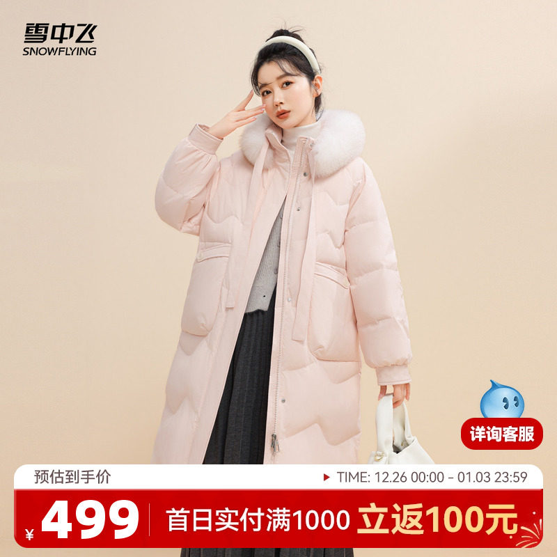 雪中飞2025冬新款女士长款大被子羽绒服加厚温柔美感粉色可爱气质