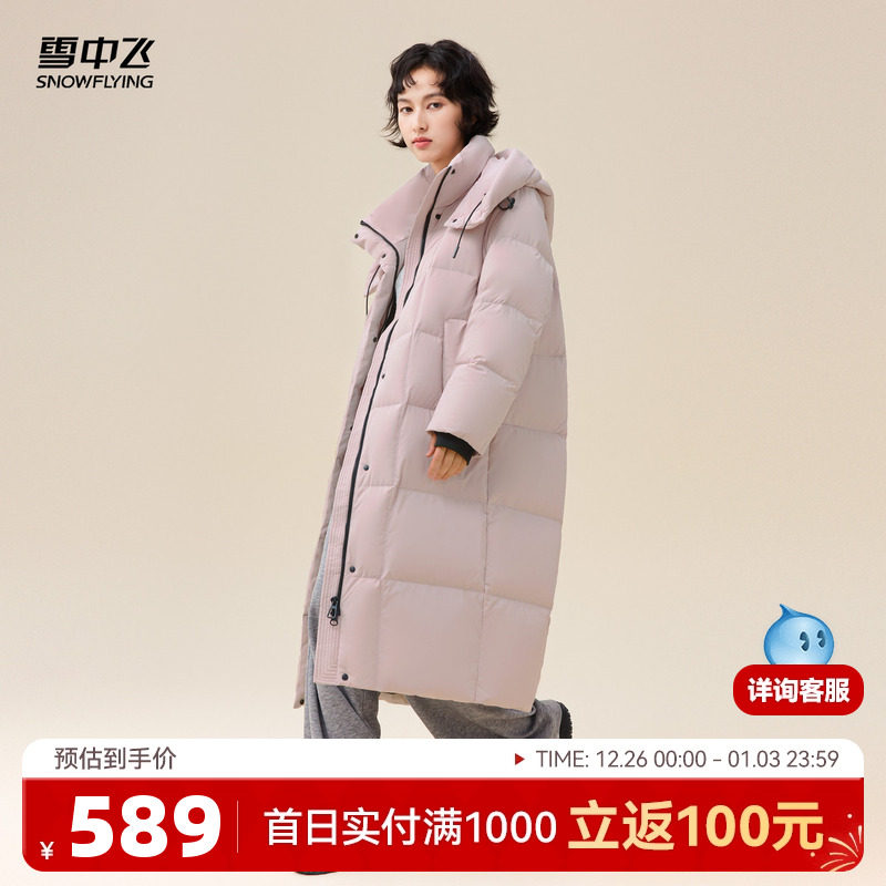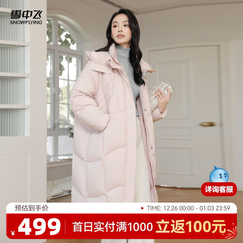 雪中飞2025冬新款女士长款连帽羽绒服加厚粉色可爱温柔舒适大被子