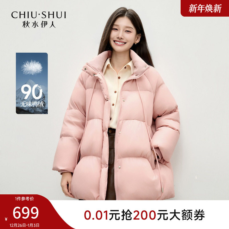 秋水伊人羽绒服女中长款2025秋冬新款女装小个子加厚粉色外套大衣