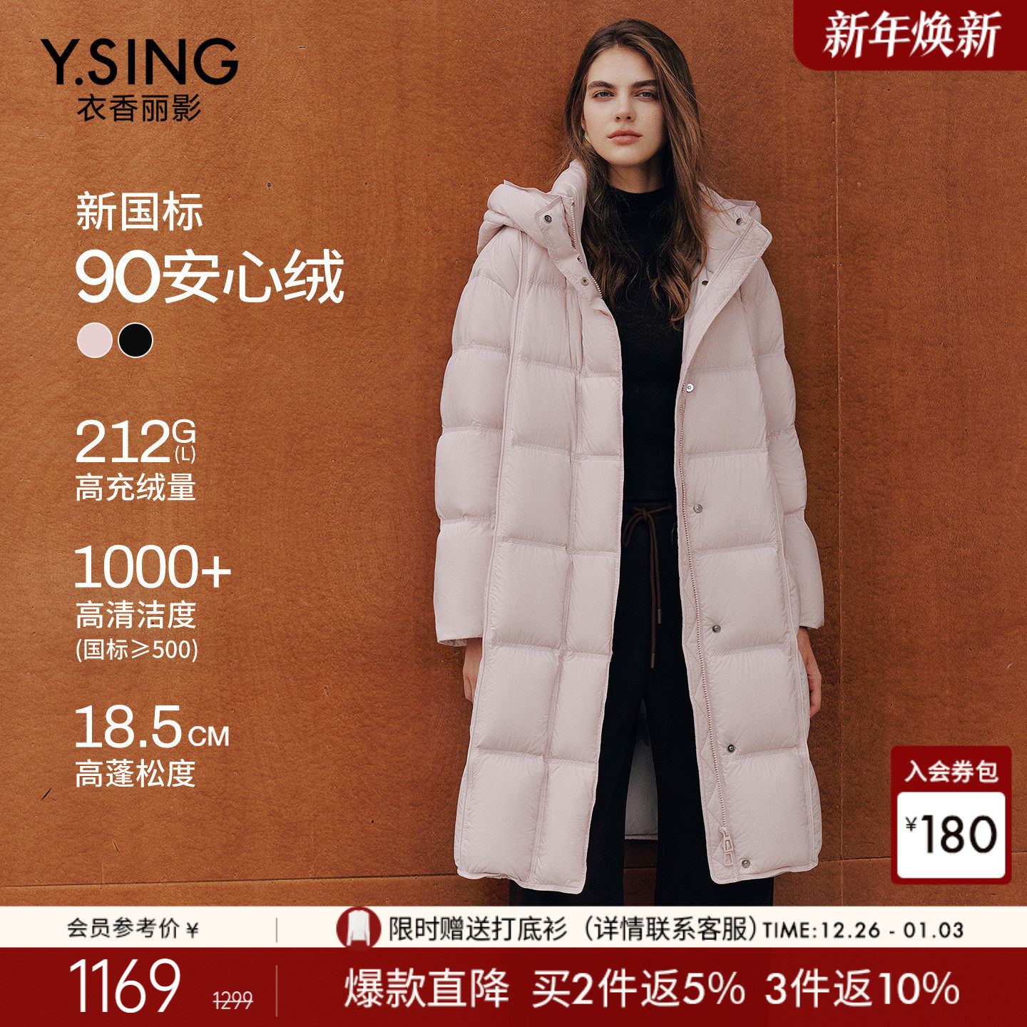衣香丽影粉色立领连帽羽绒服女长款2025年冬装新款新国标保暖外套