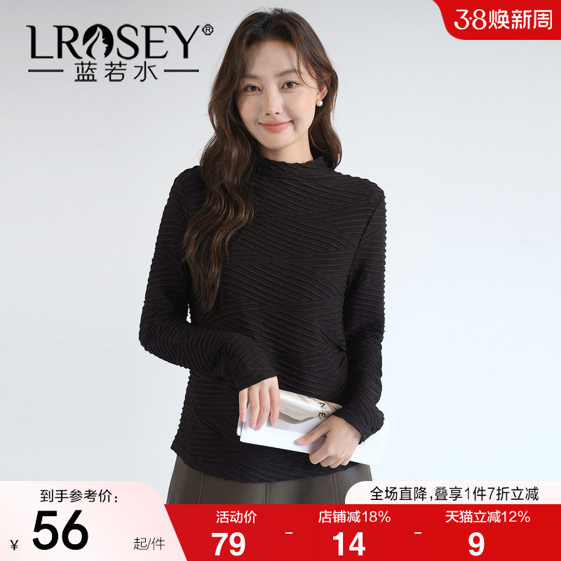蓝若水大码女装2026春季新款肌理感半高领弹力条纹针织衫内搭上衣