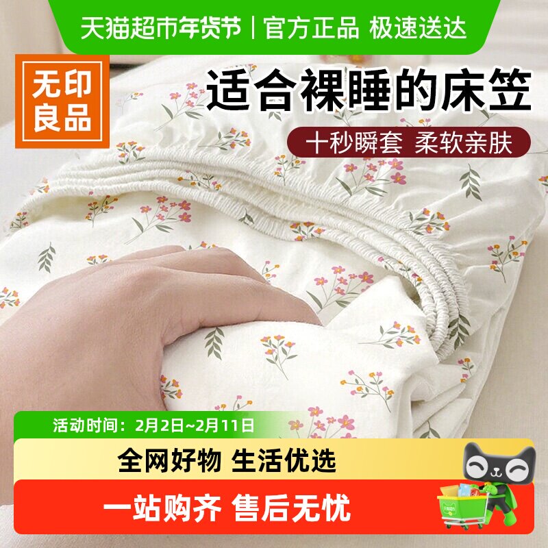 无印良品纯棉床笠单件100全棉2025新款床罩防尘全包床垫保护罩套3