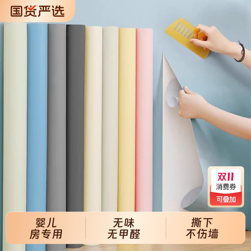 儿童房自粘墙纸 即时贴卧室寝室宿舍幼儿园贴纸家具翻新纯色防水