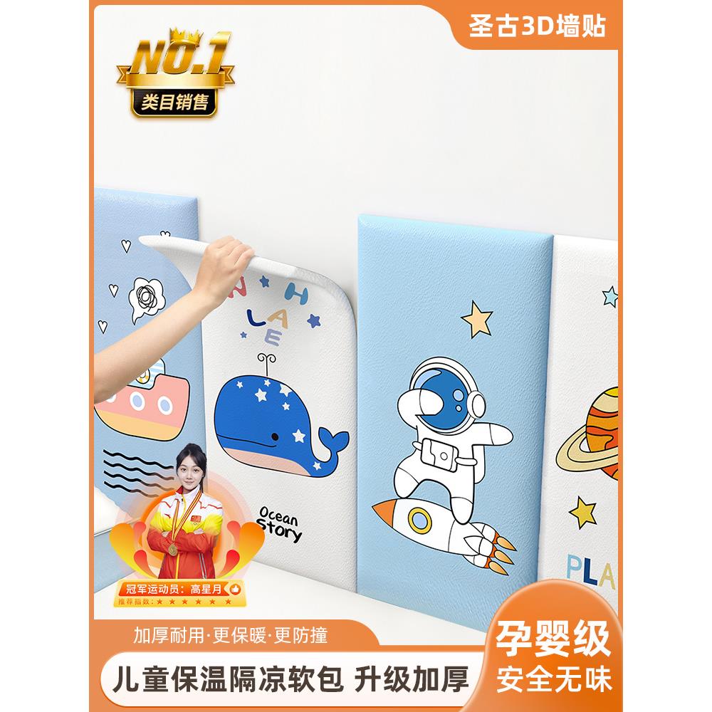 自粘3d立体墙贴卡通儿童房墙纸防水软包宿舍贴纸幼儿园防撞墙裙贴