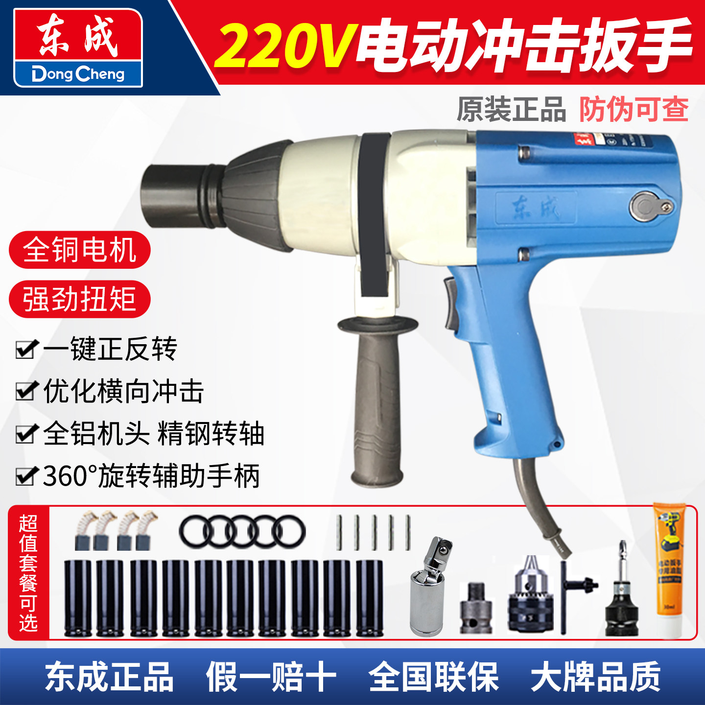 东成电动扳手220V插电式冲击扳手电动风炮强力汽修套筒东城工具