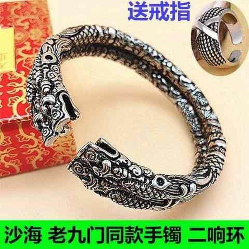 足银999老九门同款手镯男陈伟霆佛爷纯银复古龙头单双响环银镯子