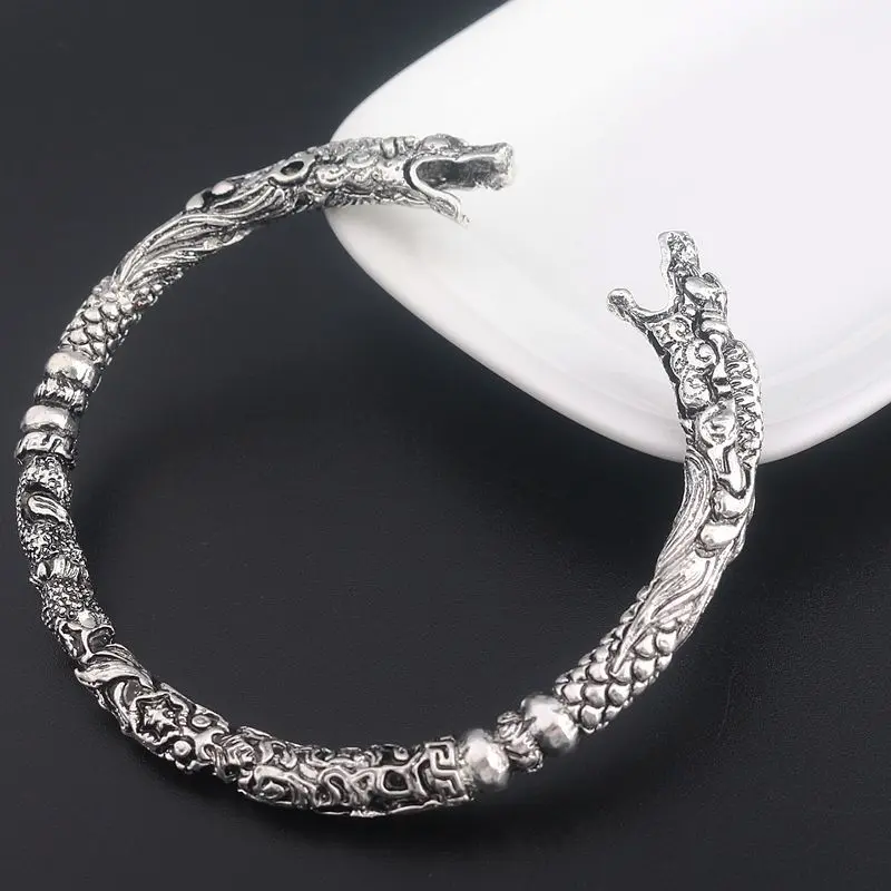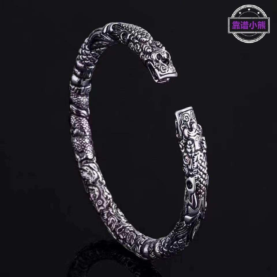 二手环仿泰银情侣响环双龙头复古同款霸气做旧男女手镯开口老九门