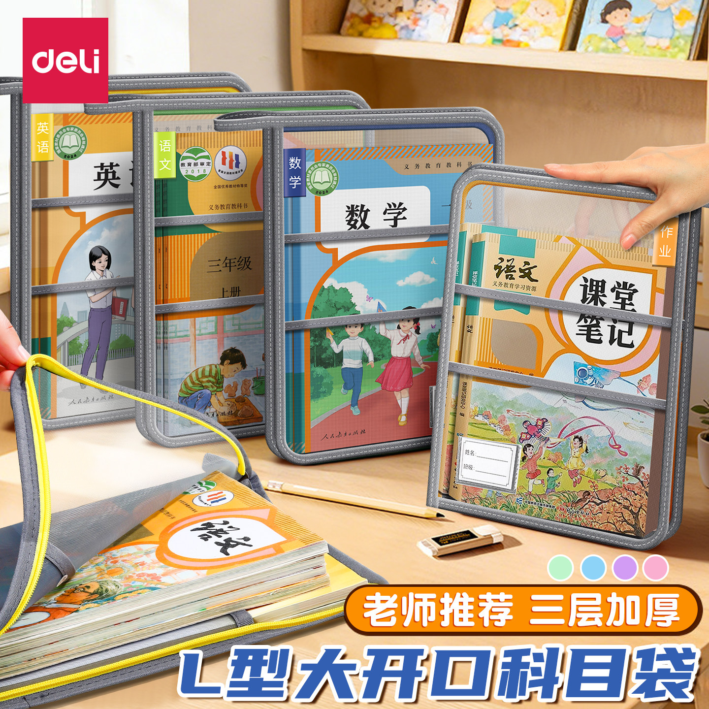 L型学科科目分类袋书袋文件袋分科补习手提装书袋子拎书袋书本收纳初中生小学生专用作业补课包试卷资料课本