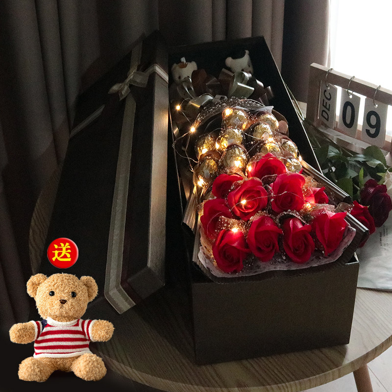 情人节礼物费列罗巧克力玫瑰花束礼盒送男女朋友老婆闺蜜生日礼物