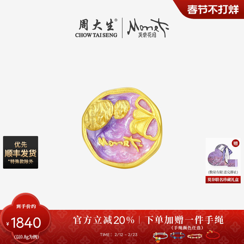 周大生黄金转运珠手链女足金莫奈花园睡莲花3D硬金手绳新年礼物