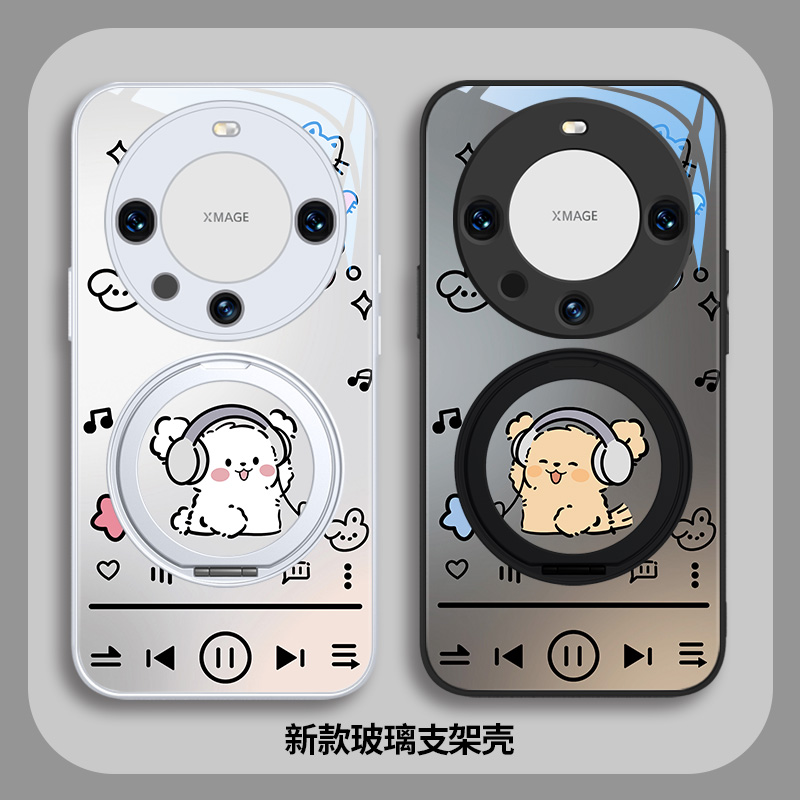 适用oppofindx8手机壳ultra情侣款x7耳机小狗6自带支架Reno14指环扣ultra秀恩爱vivox200玻璃90荣耀粉色Magic