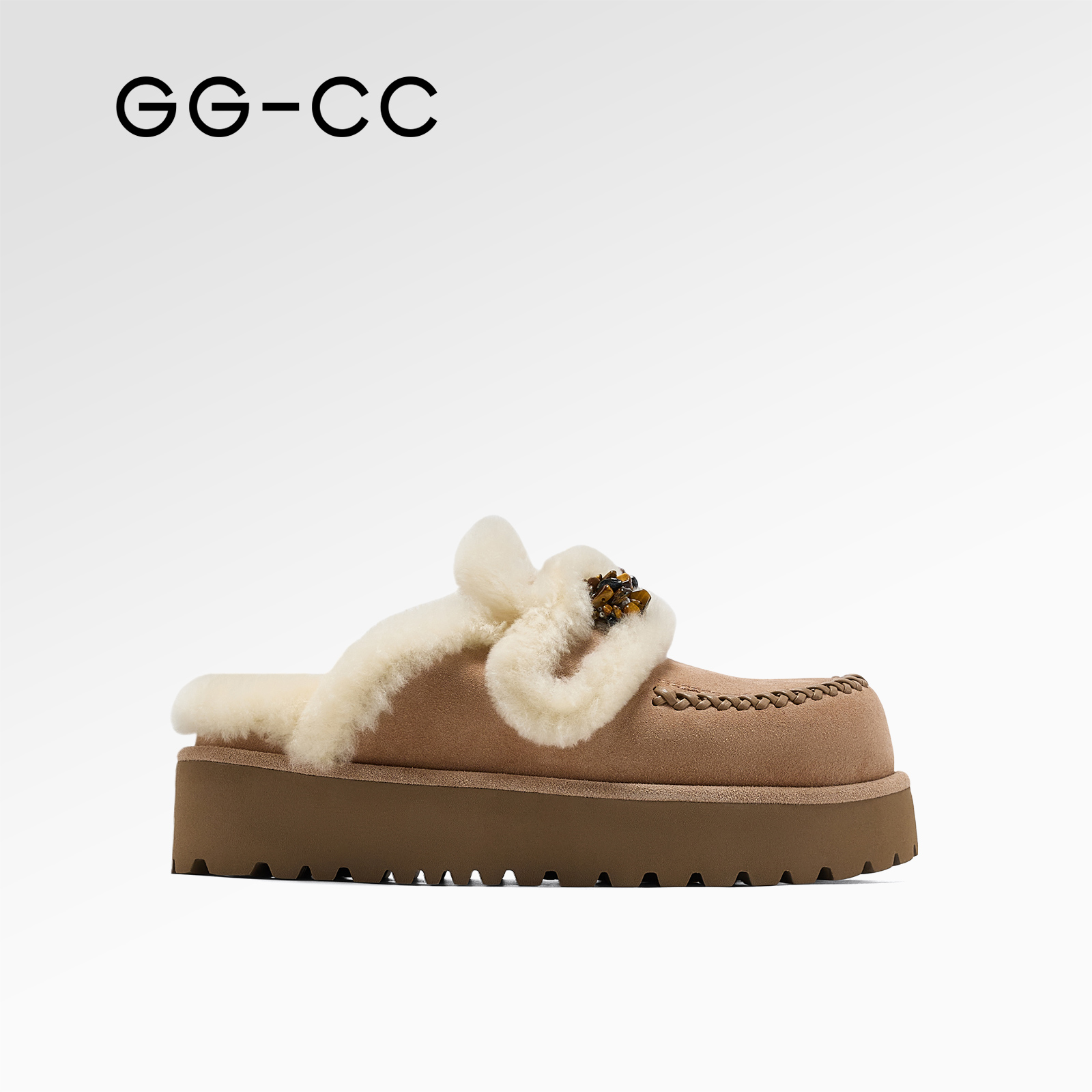 【波士红茶】GGCC2025秋季复古绒里勃肯包头拖女厚底毛毛拖鞋外穿