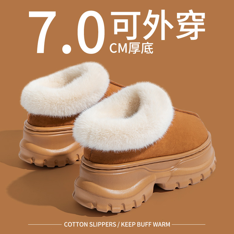 初雪小奶驼~!巨厚加绒外穿毛毛棉拖鞋女冬季厚底保暖防滑雪地靴
